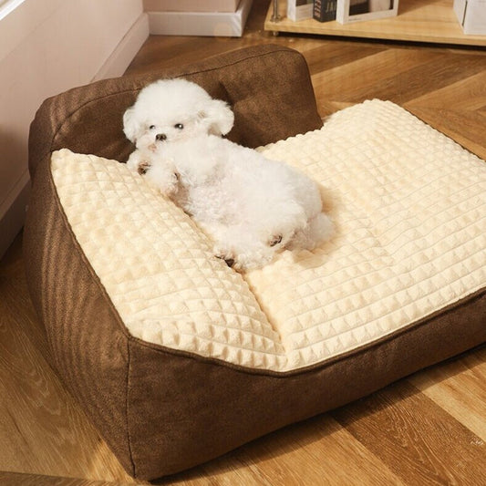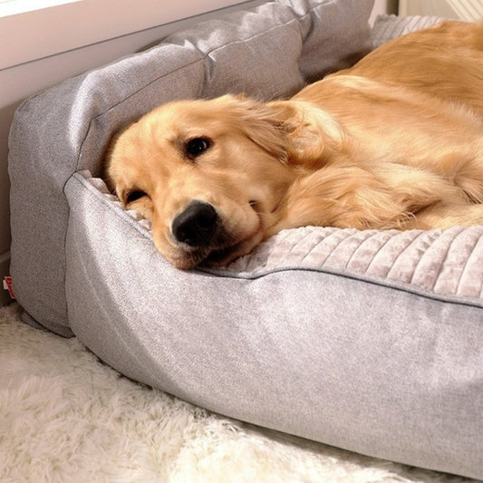 Pour les chiens qui préfèrent un peu plus de structure, notre lit canapé pour chien est idéal. Avec ses bords surélevés, il procure un sentiment de sécurité tout en offrant un soutien supplémentaire pour la tête et le cou.